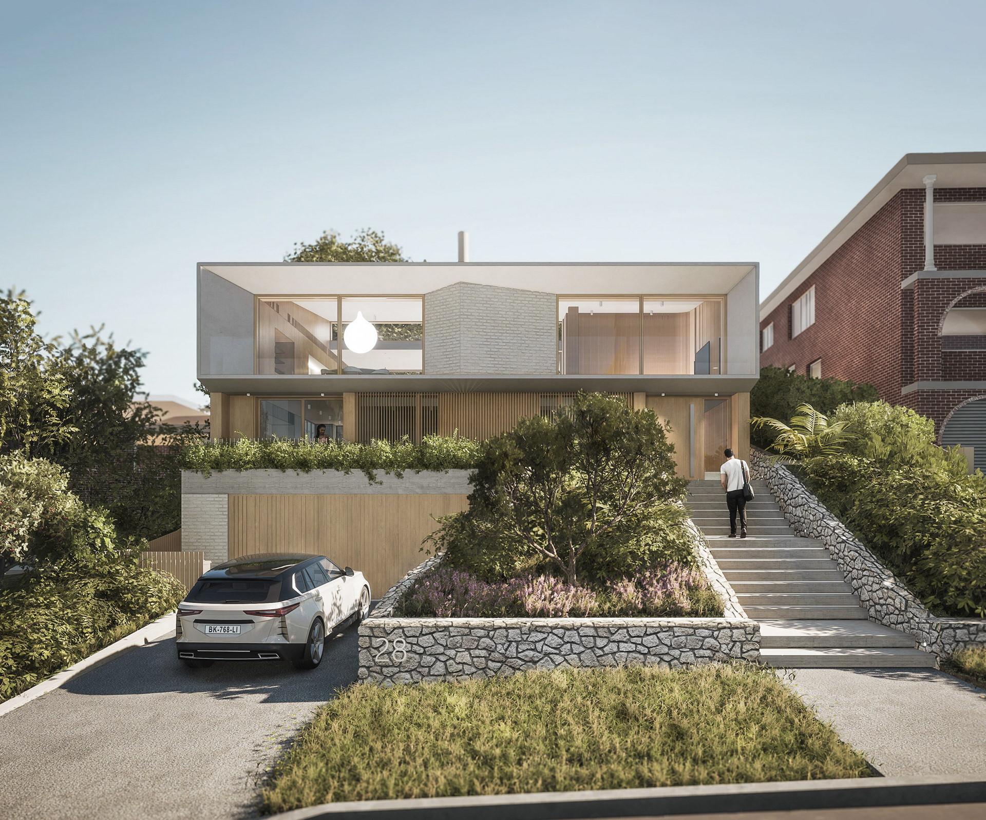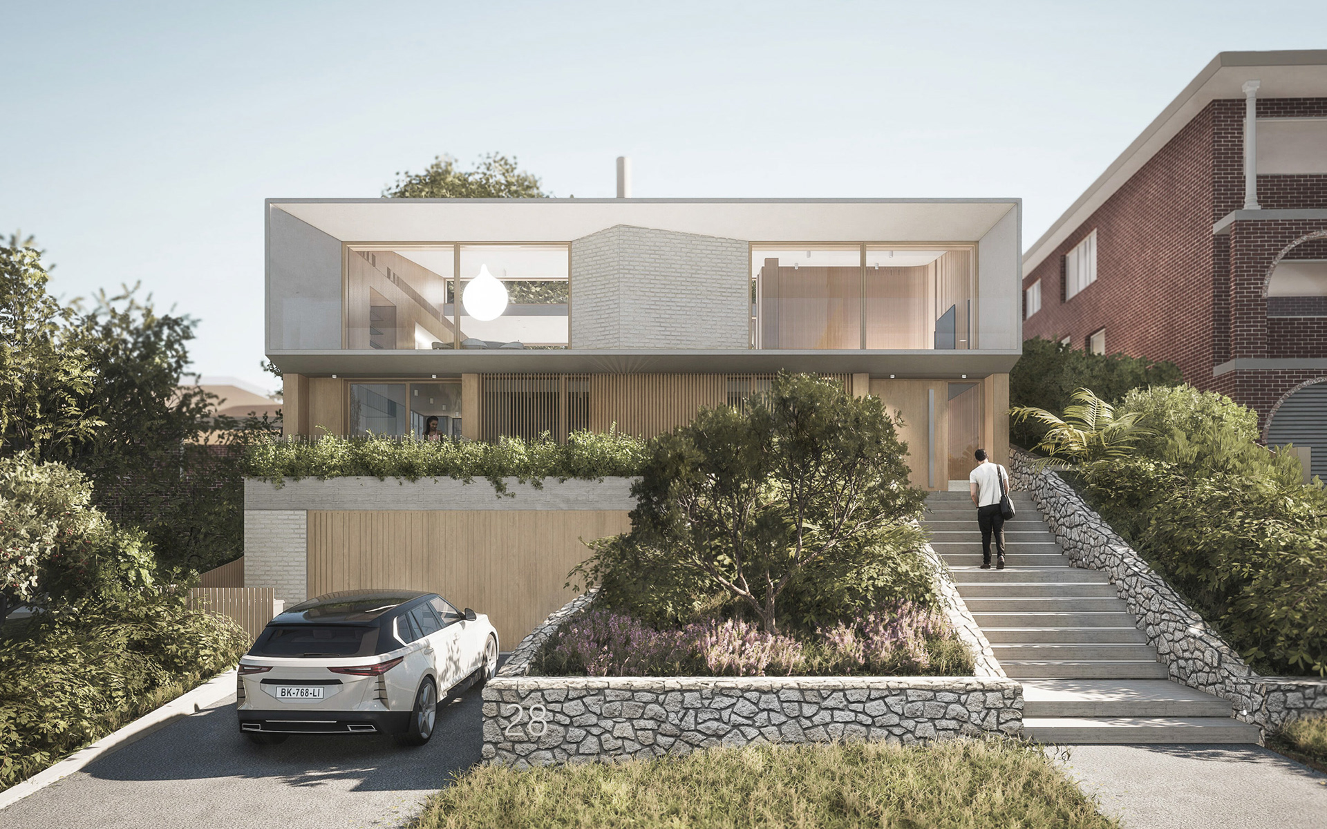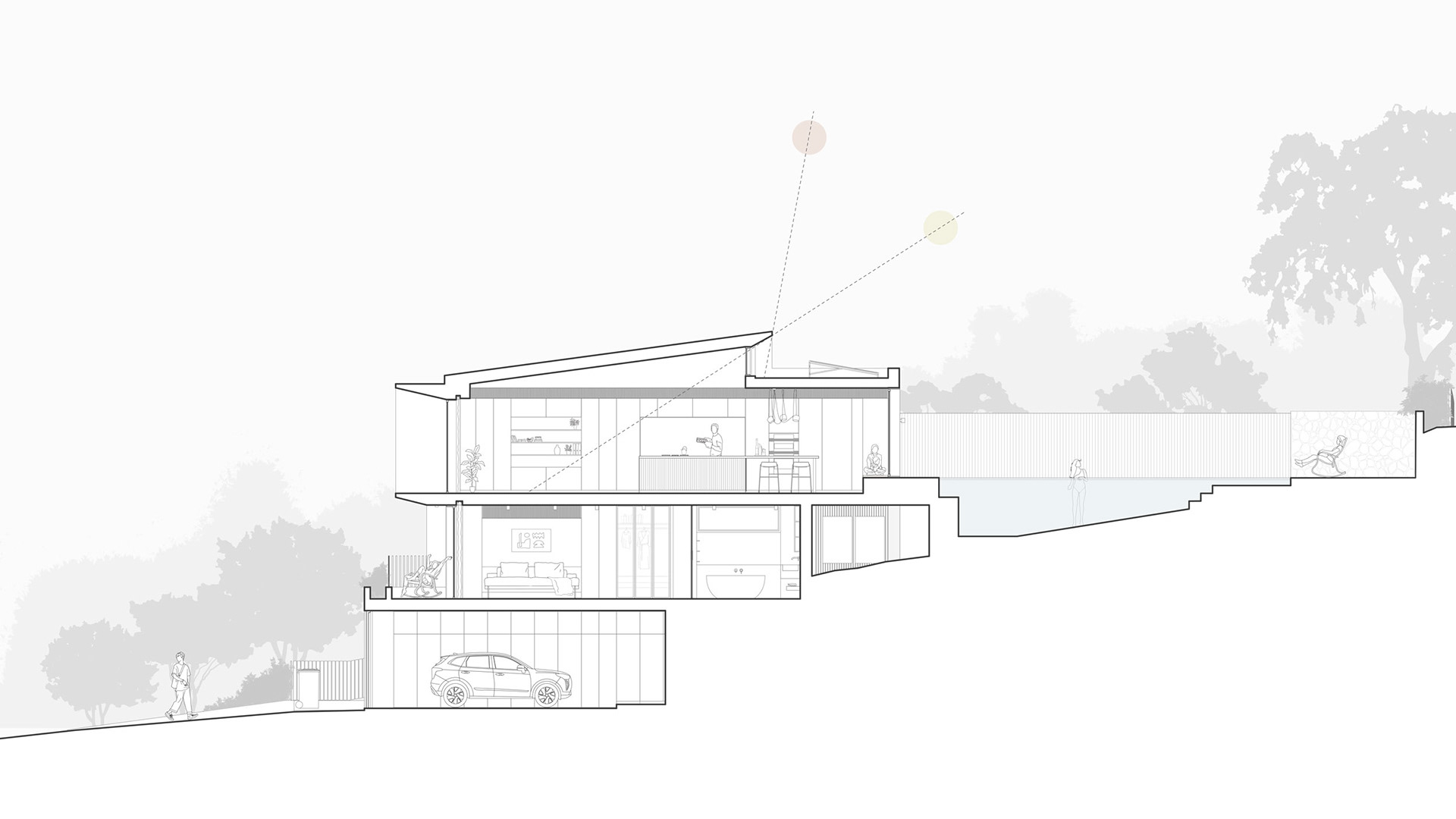 Shaped by slope and sea, the design opens to garden and pool, embracing indoor-outdoor living on Sydney’s northern coast.
