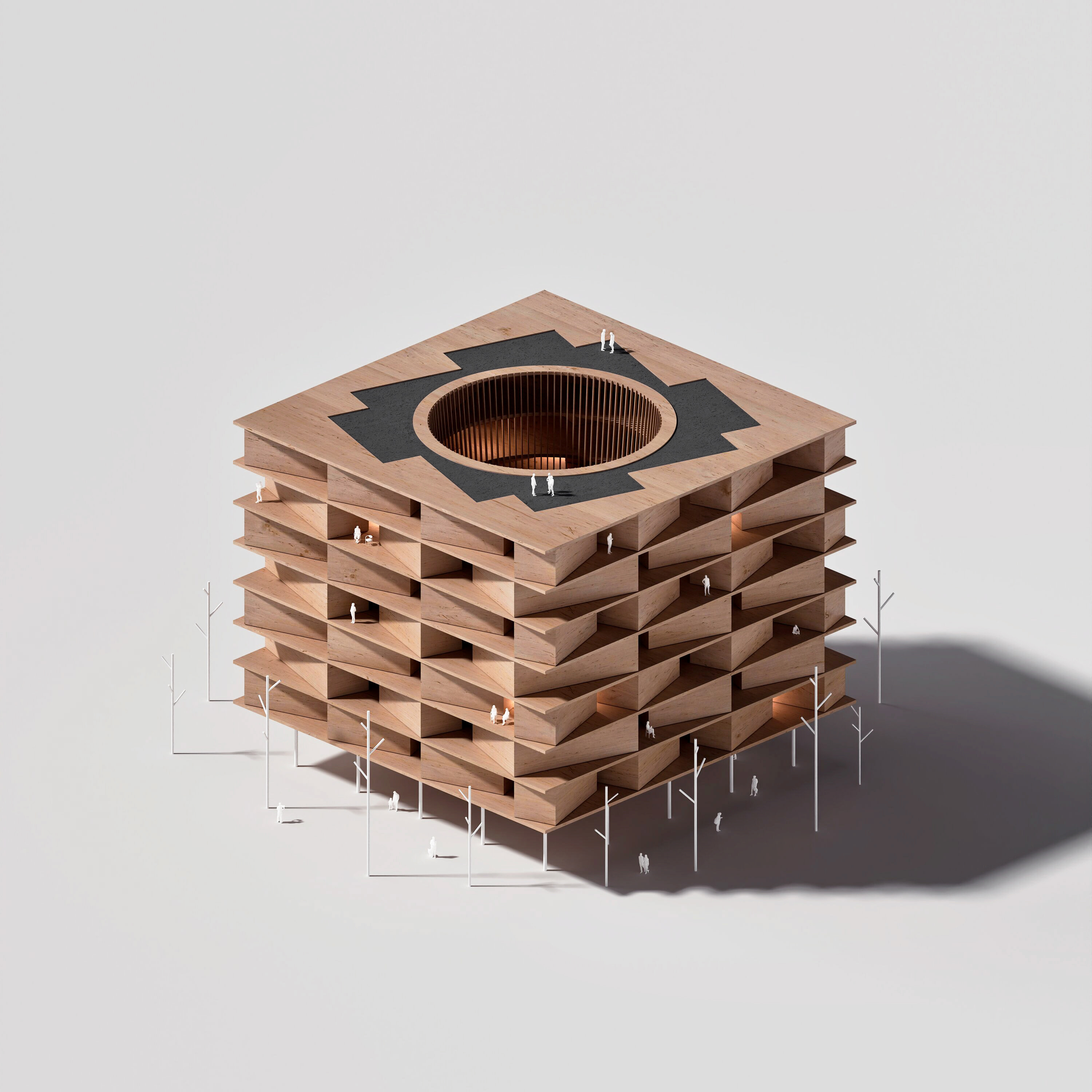 Dado Nest explores the idea of a solid volume that transforms through selective openings.
