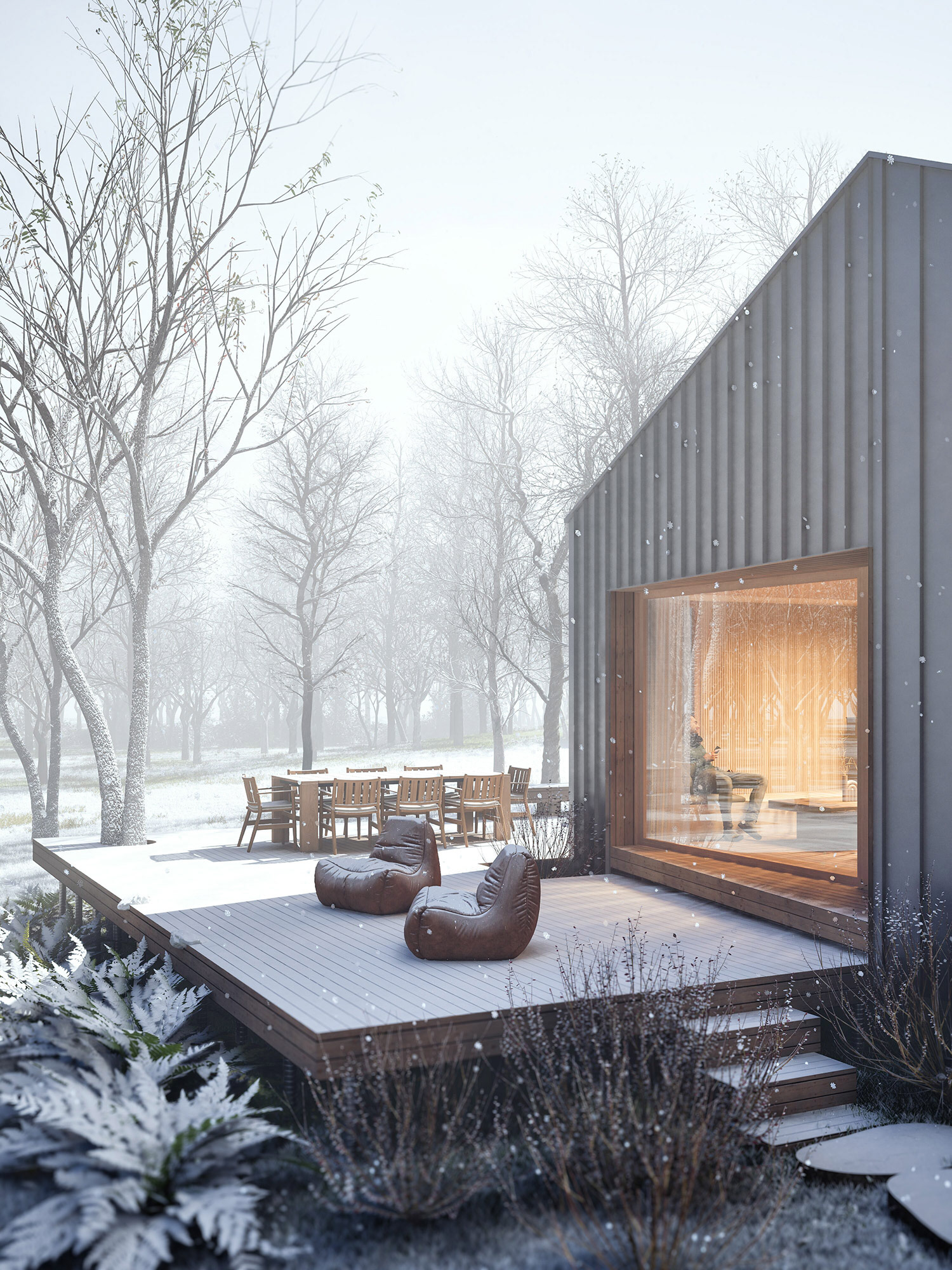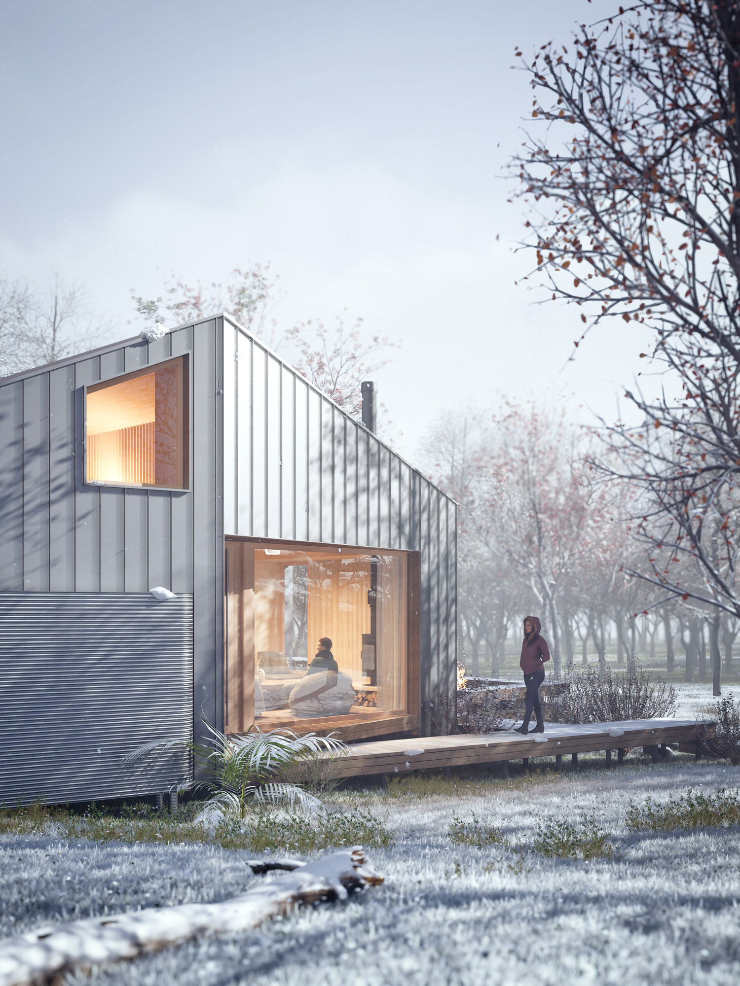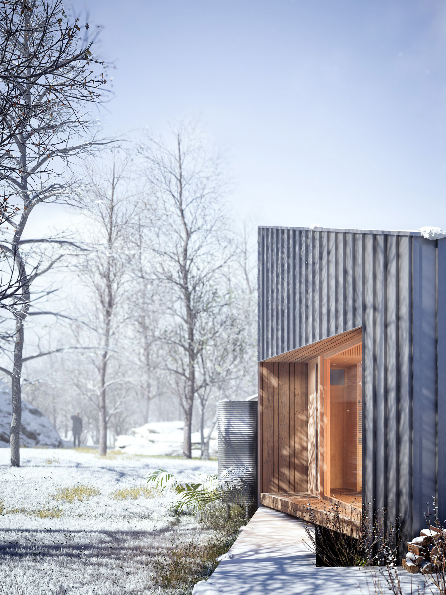 The Shelter is a compact retreat designed for comfort, clarity, and simplicity. Conceived as a place of pause, the project focuses on essential spaces and a strong, legible geometry that prioritizes warmth and protection within a harsh climate.